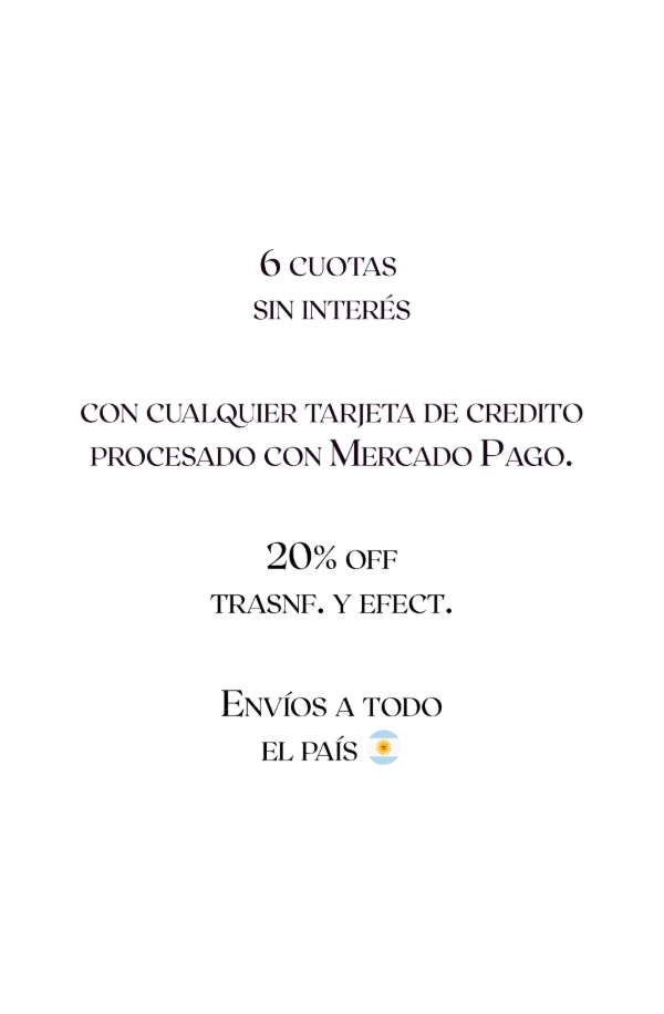 6 cuotas s/interés - 20 OFF transf. - Envíos a todo el país.